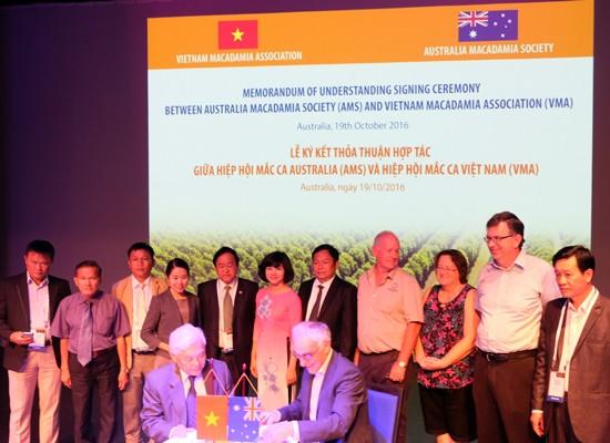 Ngày 19/10/2016, tại Úc, Hiệp hội Mắc ca Việt Nam (VMA) và Hiệp hội Mắc ca Úc (AMS) ký Thỏa thuận hợp tác trên trong khuôn khổ Hội thảo Ngành Mắc ca Úc năm 2016.